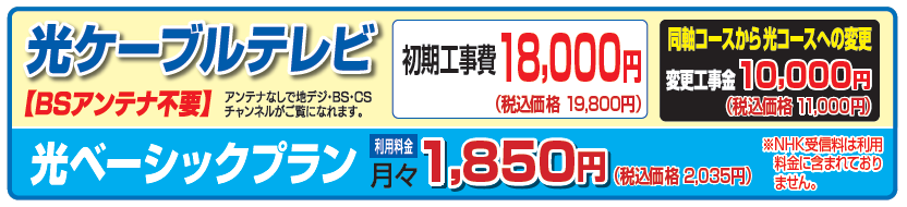 ※ご視聴になるには、ケーブルテレビ専用のSTB(セットトップボックス)が必要となります。 ※STBは買取・レンタルをしておりますので、お問い合わせ下さい。